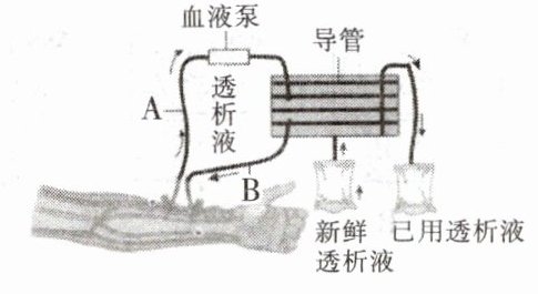20.(新理念·生命观念)如图为肾衰竭患者进行血液透析的示意图,位于透析液中的导管相当于一层半透膜,小分子物质可以透过,大分子物质不能透过。下列有关叙述正确的是 ( )