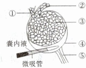 (4)B内的液体为 ,它与血浆的主要区别是不含大分子 。经化验发现,某肾病患者的尿液中有较多的蛋白质,可初步判断,该患者的肾发生病变的部位最可能是 。