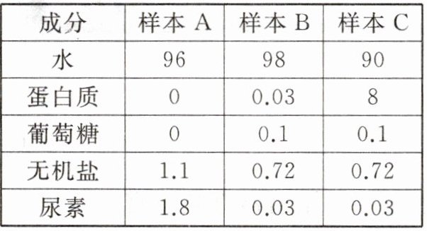 (2)样本B和样本C相比,样本B的蛋白质含量非常少,原因是蛋白质不能透过 进入肾小囊中。