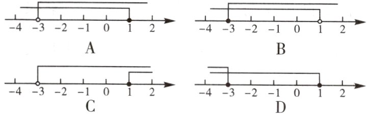 10.使式子$\frac{\sqrt{x + 3}}{\sqrt{1 - x}}$有意义的$x$的取值范围在数轴上应表示为 ( )