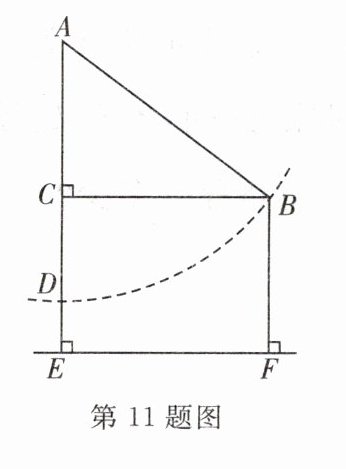 11.有一架秋千,当它静止时,踏板离地垂直高度DE = 0.5 m,将它往前推送2 m(水平距离BC = 2 m)时,秋千踏板离地的垂直高度BF = 1.5 m,秋千的绳索始终拉得很直.