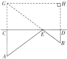 解:如图,作点$A$关于直线$CD$的对称点$G$,连接$GB$交$CD$于点$E$,连接$AE$,由“两点之间,线段最短”可以知道在点$E$处饮水,所走路程最短,最短路程为$GB$的长.