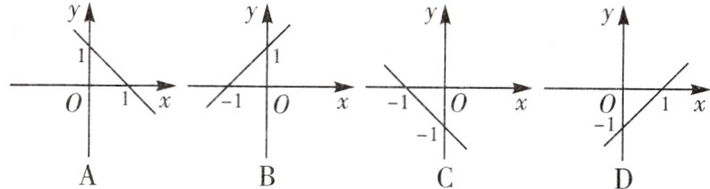 10.已知一次函数$y = kx + 1$,若$y$随$x$的增大而减小,则它的图象经过 ( )