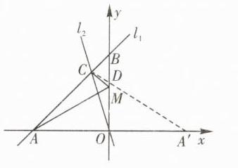 连接$CA'$交$y$轴于点$D$,当点$M$与点$D$重合时,$MC + MA$的值最小.