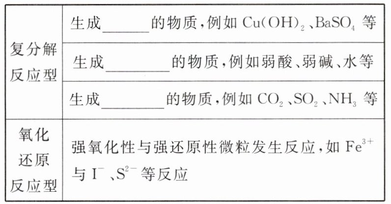 微提醒 “改写法”书写离子方程式的关键环节是“拆”:单质、氧化物、过氧化物、弱电解质、多元弱酸的酸式酸根离子、沉淀、气体、非电解质等均不能拆分,易溶于水的强电解质(强酸、强碱、大多数可溶性盐)拆成离子形式。