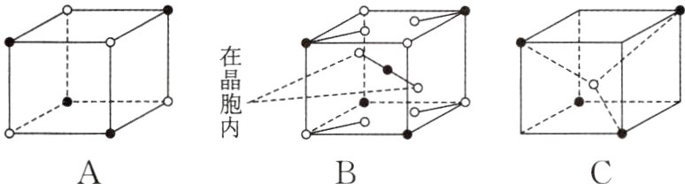 2. 如图为离子晶体空间结构示意图(●表示阳离子,○表示阴离子)。以M代表阳离子,以N表示阴离子,写出各离子晶体的组成表达式: