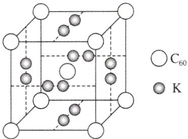 7. 科学家把$C_{60}$和K掺杂在一起制造出的化合物具有超导性能,其晶胞如图所示。该化合物中的K原子和$C_{60}$分子的个数比为________。