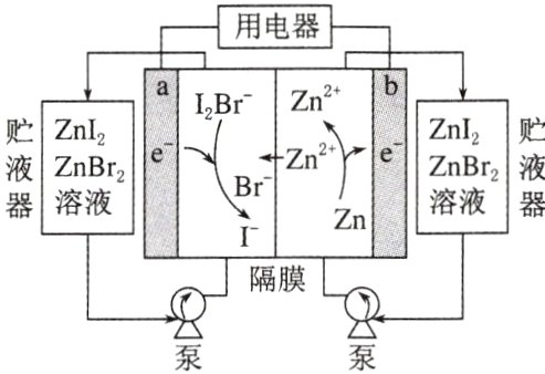 【应用3】一种新型的高比能量锌 - 碘溴液流电池,其工作原理示意图如图。图中贮液器可储存电解质溶液,提高电池的容量,下列叙述错误的是( )