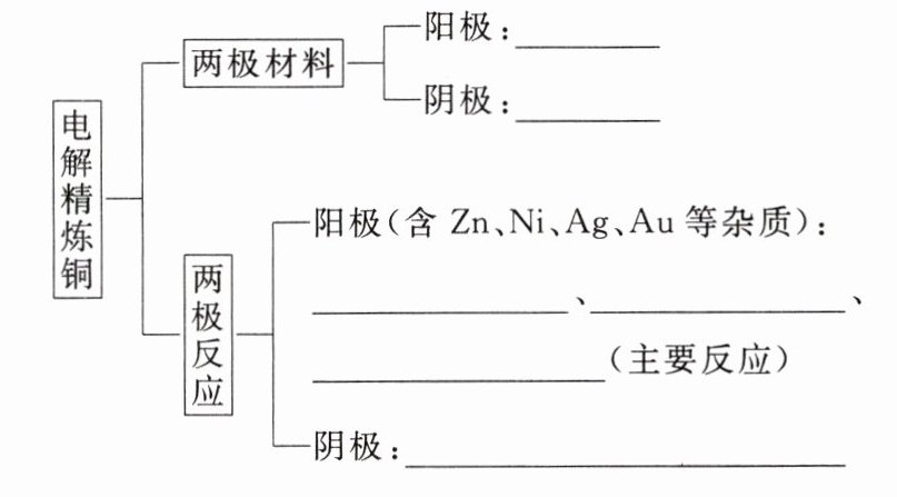 3. × 提示: 电解精炼铜时, 阴极析出的只有 Cu, 而阳极减少的有活泼的 Zn、Fe、Ni 等形成阳离子存在于溶液中, 不活泼的 Ag、Au 等形成阳极泥沉在底部, 故两极的质量变化不相等。