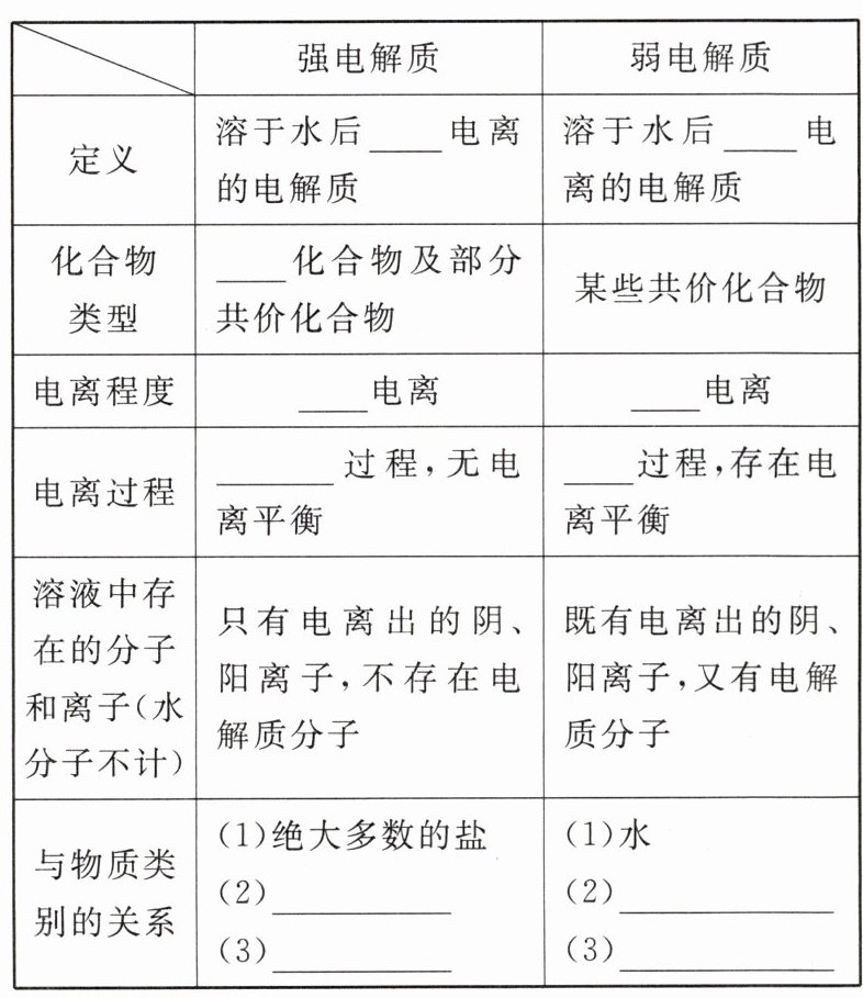 全部 部分 离子 全部 部分 不可逆 可逆 强酸 强碱 弱酸 弱碱