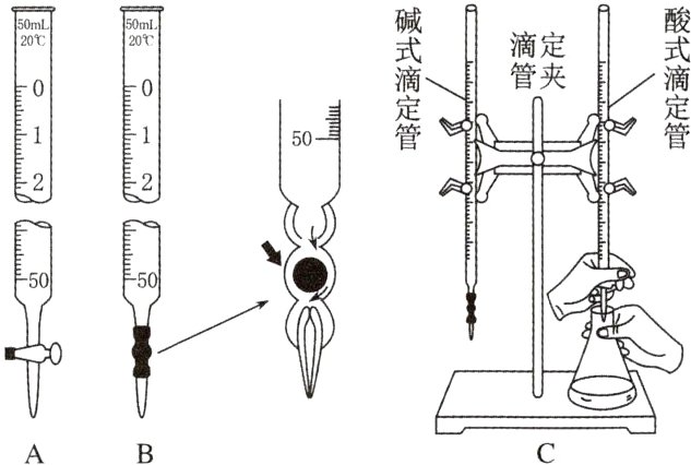(1)仪器。图A是__________,图B是____________,图C是滴定管夹、铁架台、锥形瓶。
