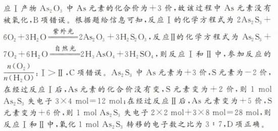 As₂S₃(s)$\begin{cases}\xrightarrow[Ⅰ]{空气,紫外光}As_{2}O_{3}+H_{2}S_{2}O_{3}\\\xrightarrow[Ⅱ]{空气,自然光}H_{3}AsO_{4}+H_{2}SO_{4}\end{cases}$