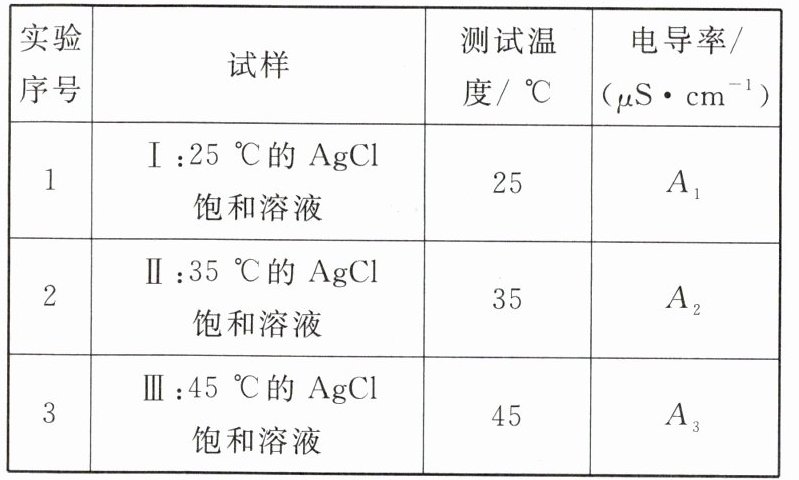 (4)设计实验、验证猜想。取试样Ⅰ、Ⅱ、Ⅲ(不同温度下配制的AgCl饱和溶液),在设定的测试温度下,进行表中实验1~3,记录数据。