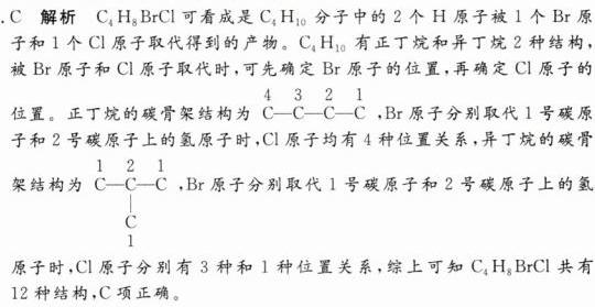 2. 分子式为C₄H₈BrCl的有机物共有(不含立体异构) ( )