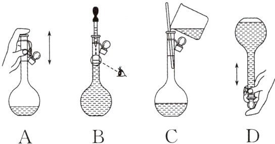 C 解析 容量瓶使用过程中,不能用手等触碰瓶口,以免污染试剂,A项错误;定容时,视线应与溶液凹液面和刻度线“三线相平”,不能仰视或俯视,B项错误;向容量瓶中转移液体时,需用玻璃棒引流,玻璃棒下端位于刻度线以下,同时玻璃棒不能接触容量瓶口,C项正确;定容完成后,盖上瓶塞,将容量瓶来回颠倒,将溶液摇匀,颠倒过程中,左手食指抵住瓶塞,防止瓶塞脱落,右手扶住容量瓶底部,防止容量瓶从左手掉落,D项错误。