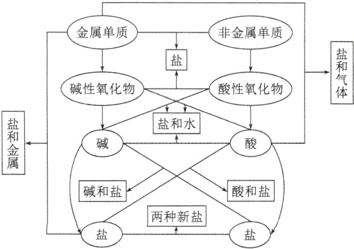 (2)单质、氧化物、酸、碱和盐的转化关系。