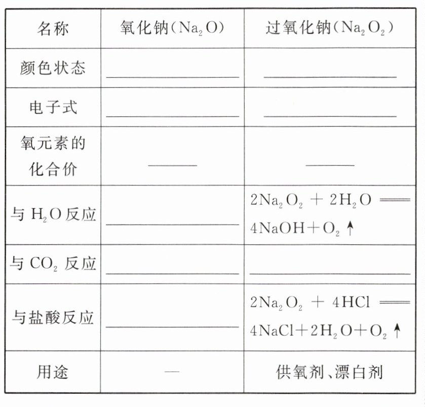 $2Na_{2}O_{2} + 2CO_{2} = 2Na_{2}CO_{3} + O_{2}$ $Na_{2}O + 2HCl = 2NaCl + H_{2}O$