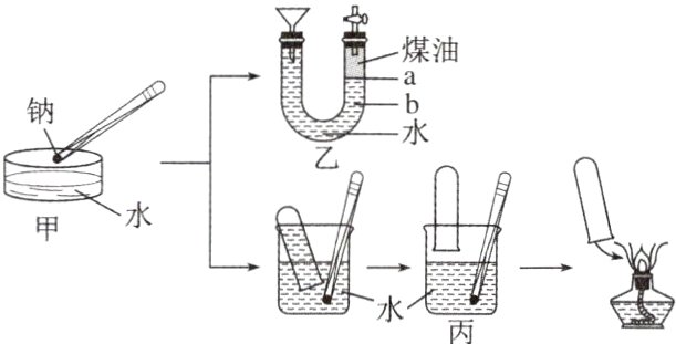 5. 如图甲是演示金属钠与水反应的重要实验,为收集检验气体产物,某兴趣小组将甲装置改进成如下乙或丙装置,根据要求回答下列问题: