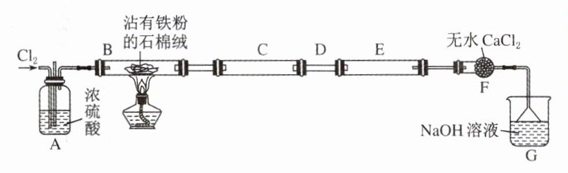 3. FeCl₃是一种常用的化工原料,它受热易升华,极易与水反应。铁粉与氯气反应制备FeCl₃的实验装置如图所示,C和E用来收集产物,回答下列问题: