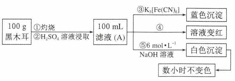 7. 某兴趣小组同学为探究黑木耳中的含铁量,进行如下实验。