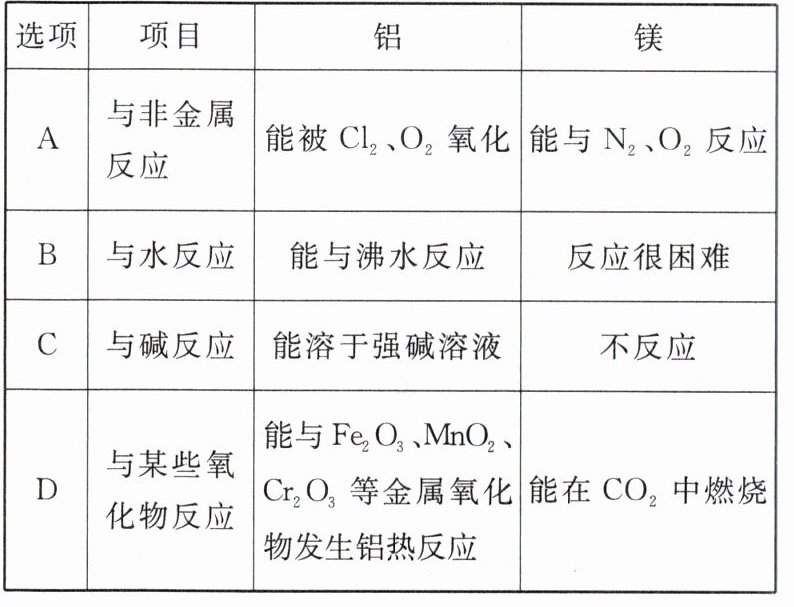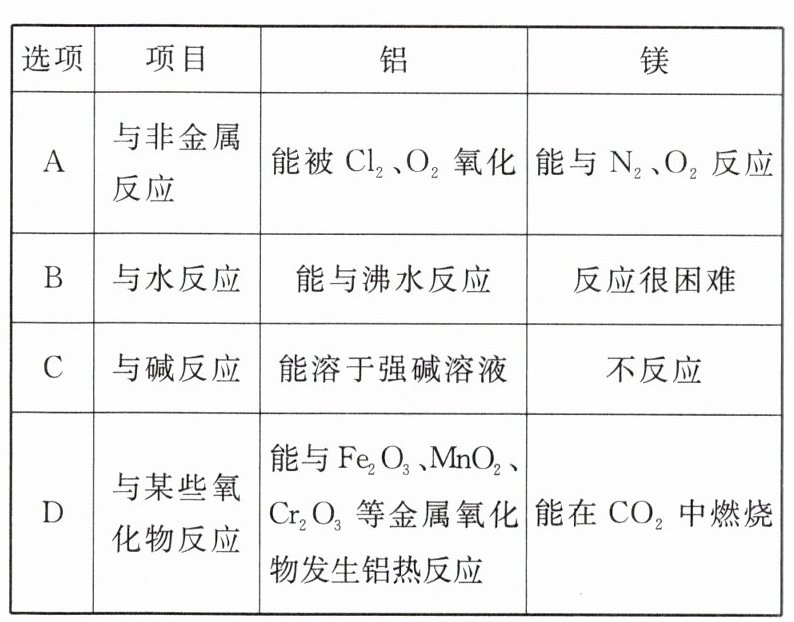 B 解析 镁的活动性强于铝,铝与水反应很困难,镁能与沸水反应。