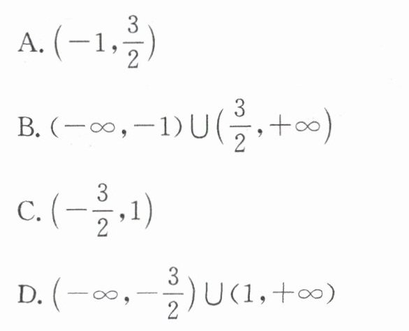1. 不等式$-2x^{2}+x + 3<0$的解集为 ( )