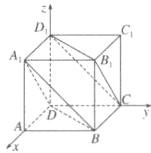 解 以$D$为原点,分别以$DA$,$DC$,$DD_{1}$所在直线为$x$轴、$y$轴、$z$轴,建立如图所示的空间直角坐标系,则$D(0,0,0)$,$A_{1}(1,0,1)$,$B(1,1,0)$,$C(0,1,0)$,$B_{1}(1,1,1)$,$D_{1}(0,0,1)$,所以$\overrightarrow{A_{1}B}=(0,1,-1)$,$\overrightarrow{A_{1}D}=(-1,0,-1)$,$\overrightarrow{A_{1}D_{1}}=(-1,0,0)$。因为$\overrightarrow{D_{1}C}=(0,1,-1)=\overrightarrow{A_{1}B}$,$\overrightarrow{B_{1}C}=(-1,0,-1)=\overrightarrow{A_{1}D}$,所以$D_{1}C// A_{1}B$,$B_{1}C// A_{1}D$,又$D_{1}C\cap B_{1}C = C$,$A_{1}B\cap A_{1}D = A_{1}$,所以平面$A_{1}BD//$平面$B_{1}CD_{1}$。设平面$A_{1}BD$的法向量为$\boldsymbol{n}=(x,y,z)$,则$\begin{cases}\boldsymbol{n}\cdot\overrightarrow{A_{1}B}=0\\\boldsymbol{n}\cdot\overrightarrow{A_{1}D}=0\end{cases}$,所以$\begin{cases}y - z = 0\\-x - z = 0\end{cases}$。令$z = 1$,得$y = 1$,$x=-1$,所以$\boldsymbol{n}=(-1,1,1)$是平面$A_{1}BD$的一个法向量。所以点$D_{1}$到平面$A_{1}BD$的距离为$\frac{|\overrightarrow{A_{1}D_{1}}\cdot\boldsymbol{n}|}{|\boldsymbol{n}|}=\frac{1}{\sqrt{3}}=\frac{\sqrt{3}}{3}$。因为平面$A_{1}BD$与平面$B_{1}CD_{1}$间的距离等于点$D_{1}$到平面$A_{1}BD$的距离,所以平面$A_{1}BD$与平面$B_{1}CD_{1}$间的距离为$\frac{\sqrt{3}}{3}$。