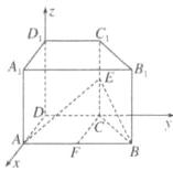 (1)证明:如图,分别以$DA$,$DC$,$DD_{1}$所在直线为$x$轴、$y$轴、$z$轴建立空间直角坐标系,则$D(0,0,0)$,$C(0,2,0)$,$D_{1}(0,0,3)$,$C_{1}(0,2,3)$,$B_{1}(2,2,3)$,$B(2,2,0)$,$E(1,2,0)$,$F(1,2,3)$,所以$\overrightarrow{D_{1}F}=(1,2,0)$,$\overrightarrow{DE}=(1,2,0)$,所以$\overrightarrow{D_{1}F}//\overrightarrow{DE}$,所以$D_{1}F// DE$。又因为$\overrightarrow{BF}=(-1,0,3)$,$\overrightarrow{EC_{1}}=(-1,0,3)$,所以$\overrightarrow{BF}//\overrightarrow{EC_{1}}$,所以$BF// EC_{1}$,又$D_{1}F\cap BF = F$,$DE\cap EC_{1}=E$,所以平面$BD_{1}F//$平面$C_{1}DE$。
