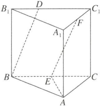 3.如图,在正三棱柱ABC - A₁B₁C₁中,AB = AA₁ = 2,E,F分别是BC,A₁C₁的中点。设D是线段B₁C₁上的(包括两个端点)动点,当直线BD与EF所成角的余弦值为$\frac{\sqrt{10}}{4}$时,线段BD的长为________。