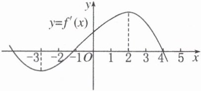 BD 解析:函数$y = f(x)$在区间$(2,4)$上$f^{\prime}(x)>0$,则函数$f(x)$在区间$(2,4)$上单调递增,故 A 不正确,B 正确;C 项,由题中图象知当$x = - 3$时,函数$f^{\prime}(x)$取得极小值,但是函数$y = f(x)$没有取得极小值,故 C 错误;D 项,当$x = 4$时,$f^{\prime}(x)=0$,当$2<x<4$时,$f^{\prime}(x)>0$,函数$y = f(x)$单调递增,当$x>4$时,$f^{\prime}(x)<0$,函数$y = f(x)$单调递减,故 4 是函数$f(x)$的极大值点,故 D 正确。故选 BD。