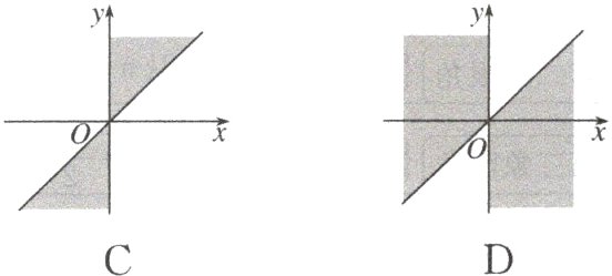 2. 集合$\left\{\alpha\mid k\pi+\frac{\pi}{4}\leqslant\alpha\leqslant k\pi+\frac{\pi}{2},k\in\mathbf{Z}\right\}$中的角所表示的范围(阴影部分)是 ( )