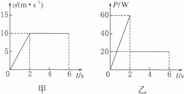 【典例8】(多选)放在粗糙水平地面上质量为$0.8kg$的物体受到水平拉力的作用,在$0~6s$内其速度与时间的关系图像和该拉力的功率与时间的关系图像分别如图甲、乙所示,重力加速度$g = 10m/s^{2}$。下列说法中正确的是 ( )