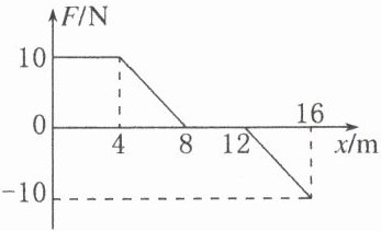【典例6】 质量$m = 10kg$的物体只在变力$F$作用下沿水平方向做直线运动,$F$随坐标$x$的变化关系如图所示。若物体从坐标原点处由静止出发,则物体运动到$x = 16m$处时的速度大小为 ( )