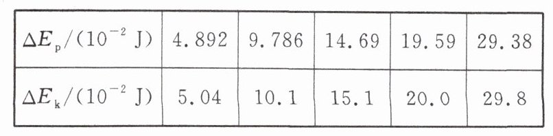 (3)不同意,因为空气阻力会造成$\Delta E_{k}$小于$\Delta E_{p}$,但表中$\Delta E_{k}$大于$\Delta E_{p}$。