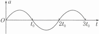 【典例4】(多选)(2023·湖北卷)$t = 0$时刻,质点$P$从原点由静止开始做直线运动,其加速度$a$随时间$t$按图示的正弦曲线变化,周期为$2t_0$。在$0~3t_0$时间内,下列说法正确的是( )