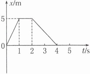 5m/s,1~2s内斜率为零,说明质点的速度为0,处于静止状态;2~4s内,质点的速度为v2=$\frac{x}{△t}$=$\frac{0−5}{4−2}$m/s=−2.5m/s,