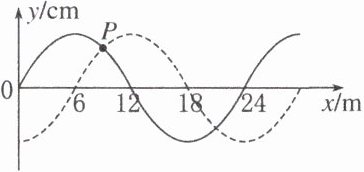 A 解析 根据题意,由题图可知,该波的波长为24m,若波向右传,质点P的运动方向向上,则有$\frac{1}{4}$T=t=0.3s,解得T=1.2s,波的传播速度为=$\frac{24m}{1.2s}$=20m/s;若波向左传,质点P的运动方向向下,则有$\frac{3}{4}$T=t=0.3s,解得T=0.4s,波的传播速度u=$\frac{24m}{0.4s}$=60m/s,故C、D两项错误,A项正确;简谐横波在x 轴方向传播,质点沿y轴方向振动,沿x轴方向没有运动,故B项错误。