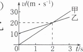 10m/s²,a=$\frac{}{△t}$=$\frac{20−10}{2}$m/s²=5m/s²,0~1s的位移为x.=$\frac{1}{2}$a甲t²=$\frac{1}{2}$×10×1²m=5m,x=ut+$\frac{1}{2}$at²=(10×1+$\frac{1}{2}$×5×1²)m=12.5m,△x=x−x=12.5m−5m=7.5m,即在t=0 时,甲车在乙车前7.5m,故A、B两项错误;由分析可知,甲、乙两车相遇时刻分别在1s和3s,故C项错误;1s末甲车的速度为u=at=10×1m/s=10m/s,1~3s,甲车的位移为x=ut+$\frac{1}{2}$at²=(10×2+$\frac{1}{2}$×10×2²)m=40m,即甲、乙两车两次并排行驶的位置之间沿公路方向的距离为40m,故D项正确。
