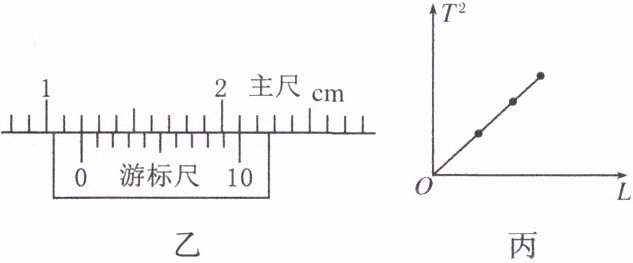 (2)如图丙,是根据实验测得多种不同摆长的振动周期作出的$T^{2}-L$图像。图线的斜率为$k$,则当地的重力加速度$g =$______。