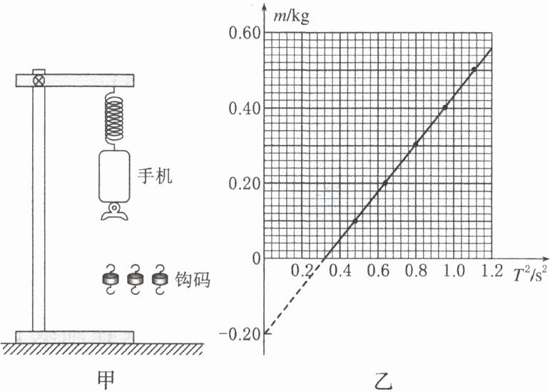 (2)根据$m - T^{2}$图像还可以求出手机和夹子的总质量为______kg,弹簧的劲度系数为______N/m。