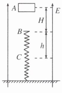 【典例2】如图所示,在空间中存在竖直向上的匀强电场,质量为m、电荷量为q(q>0)的物块从A点由静止开始下落,加速度为$\frac{1}{3}g$,下落高度H到B点后与一轻弹簧接触,又下落h后到达最低点C,整个过程中不计空气阻力,且弹簧始终在弹性限度内,重力加速度为g,则带电物块在由A点运动到C点过程中,下列说法正确的是( )