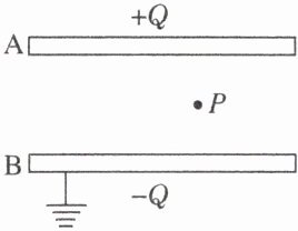B板接地,使其A板带有电荷量+Q,B板带有电荷量 -Q,板间电场中有一固定点P,以下说法正确的是 ( )