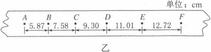 (2)小组通过实验得到了如图乙所示的一条纸带(每两个相邻计数点间还有4个点没有画出来),相邻两个计数点间的距离已在图中标出。