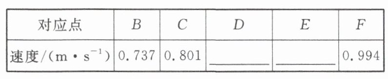 ①表中列出了打点计时器打下B、C、F点时小车的瞬时速度,请计算打点计时器打下D、E两点时小车的瞬时速度,并填入下表中。