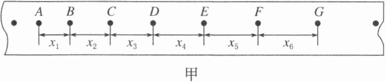 (3)在“探究小车速度随时间变化的规律”的实验中,某同学用打点计时器得到的表示小车运动过程的一条清晰纸带(如图甲),纸带上两相邻计数点间还有四个点没有画出,打点计时器打点的时间间隔$T = 0.02$ s,其中$x_{1}=7.05$ cm、$x_{2}=7.68$ cm、$x_{3}=8.33$ cm、$x_{4}=8.95$ cm、$x_{5}=9.61$ cm、$x_{6}=10.26$ cm。