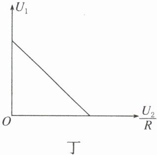 (3) 该小组同学想借助该实验电路测量电源的电动势和内阻,根据(1)中记录的数据做出图像如图丁所示,此图像的斜率的绝对值为 k,截距为 b,若将两电压表均视为理想电表,则该同学测得的电源的电动势$E =$______;内阻$r =$______(用题中给出的物理量的字母表示)。