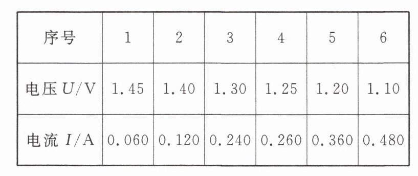 (4)根据闭合电路欧姆定律,E = U + Ir,变化为U = E - Ir。由此可知,干电池的U - I曲线在纵轴的截距数值等于电源电动势,斜率的绝对值等于电源内阻,所以干电池的电动势E = 1.50V,内阻r ≈ 0.83 $\Omega$。