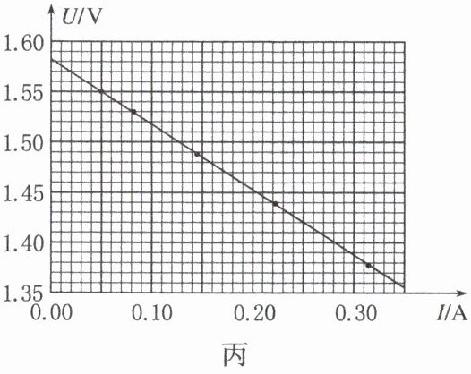 (2)由电路结合闭合电路的欧姆定律可得U = E - Ir,由题图丙可知E = 1.58V,内阻r = $\frac{1.58 - 1.37}{0.33}$ $\Omega$ ≈ 0.64 $\Omega$。