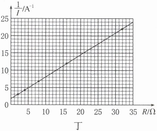 (3)根据E = I(R + R_{A} + r)可得$\frac{1}{I}$ = $\frac{1}{E}$·R + $\frac{R_{A}+r}{E}$,由题图丁可知$\frac{R_{A}+r}{E}$ = 2 A^{-1},解得R_{A} ≈ 2.5 $\Omega$。