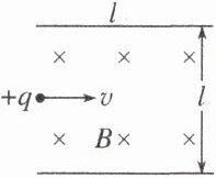 【典例10】(多选)长为$l$的水平极板间有垂直纸面向里的匀强磁场,如图所示。磁感应强度为$B$,板间距离也为$l$,极板不带电。现有质量为$m$、电荷量为$q$的带正电粒子(不计重力),从左边极板间中点处垂直磁感线以速度$v$水平射入磁场,欲使粒子不打在极板上,可采用的办法是 ( )